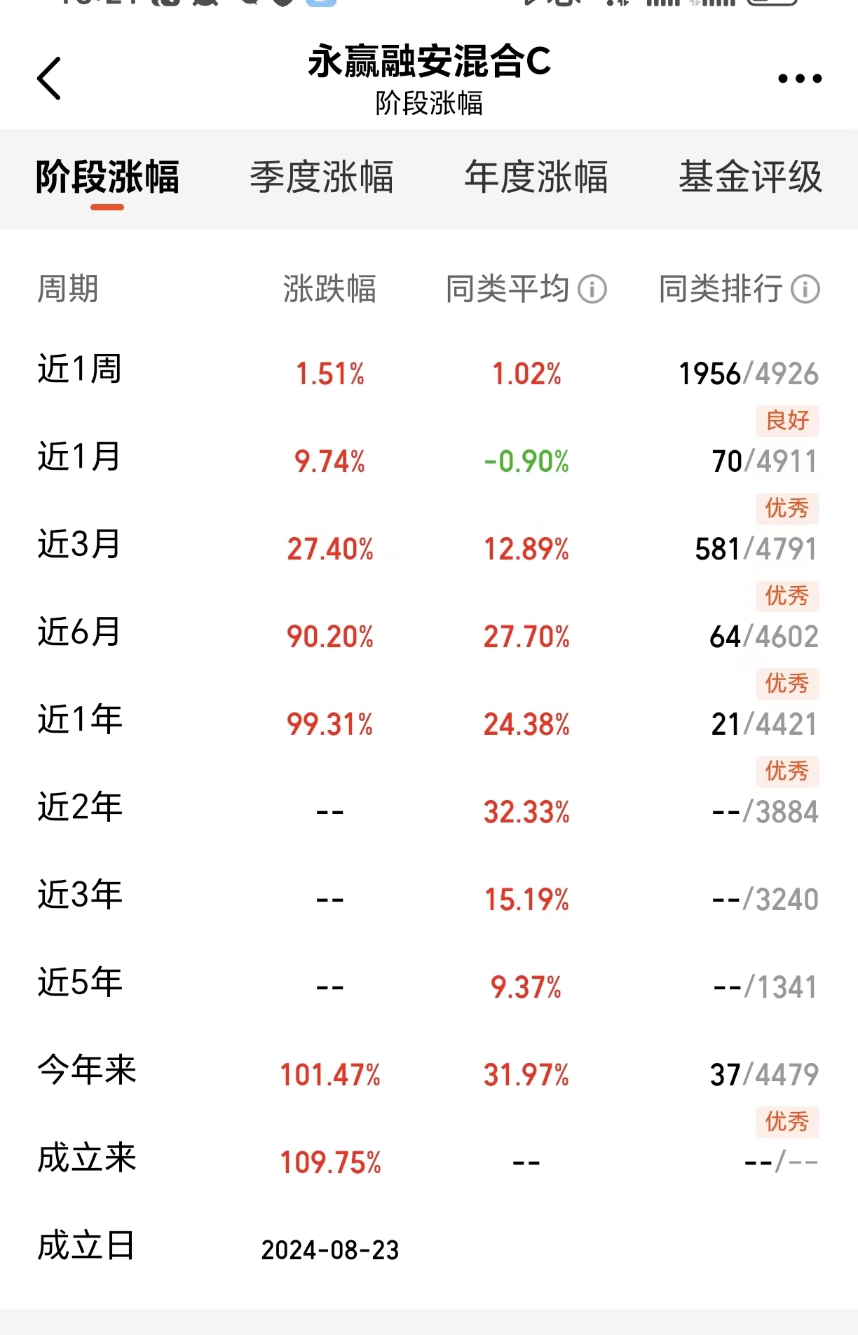 今日市场再度冲高回落,上证指数于20日均线附近震荡,量能有所下滑。这种缩量时刻,就应该选择那些绩优基金,因为他们轮动总是有一手,$永赢融安混合C$ (020758)就是这样一只产品,它以惊人的业绩证明一切。