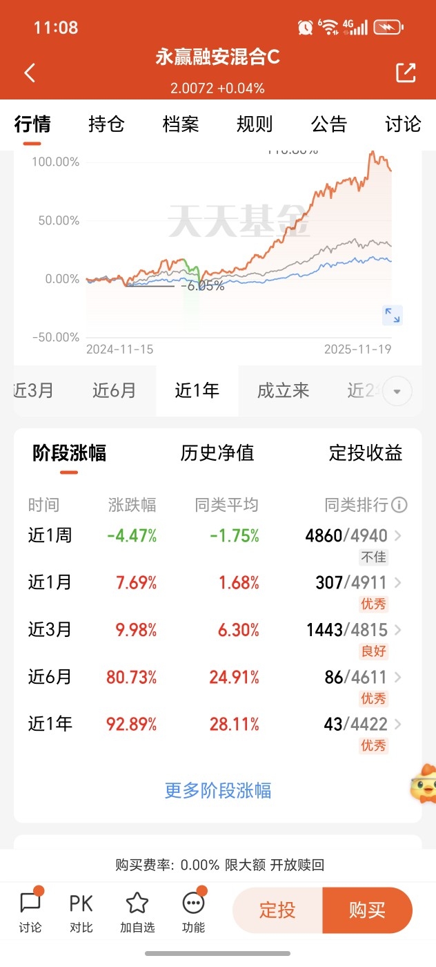 $永赢融安混合C$ 持仓主要布局在量子计算、cpo、创新药等,覆盖全行业龙头股,每次都恰好踩中市场热点。昨天小涨0.04%,近六个月涨80.73%,近一年92.89%的涨幅,业绩表现优秀。均衡配置挺适合当下市场,继续跟上经理高楠的脚步,冲!#全球股市集体下跌 你怎么看?#