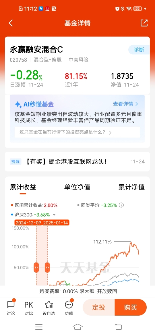$永赢融安混合C$是时候入手了,持仓全面反弹,近三个月涨幅3.74%,近六个月涨