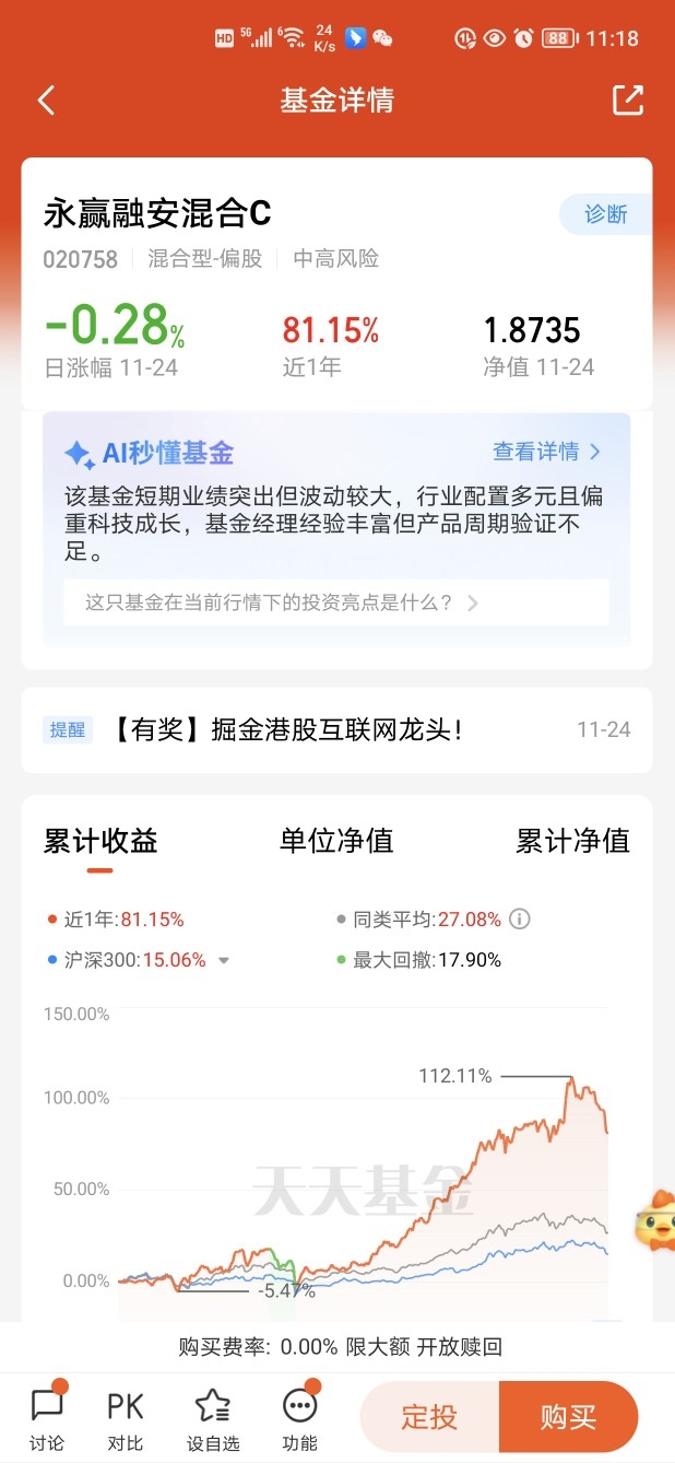 作为一只擅长轮动的基金,$永赢融安混合C$ 总能精准抓住科技股轮动中的最锐部分。从持仓情况来看,基金聚焦科技核心赛道2025年科技股行情从AI算力延伸到光通信、服务器等主线,这只基金也及时调整布局,紧跟产业趋势切换持仓,完美踩中每一波热点行情。这只基金的出色表现,离不开基金经理高楠的精准操盘。高楠深耕证券行业14年,管理基金已有6年,积累了丰富的市场经验。#今年买基金赚了多少钱?#