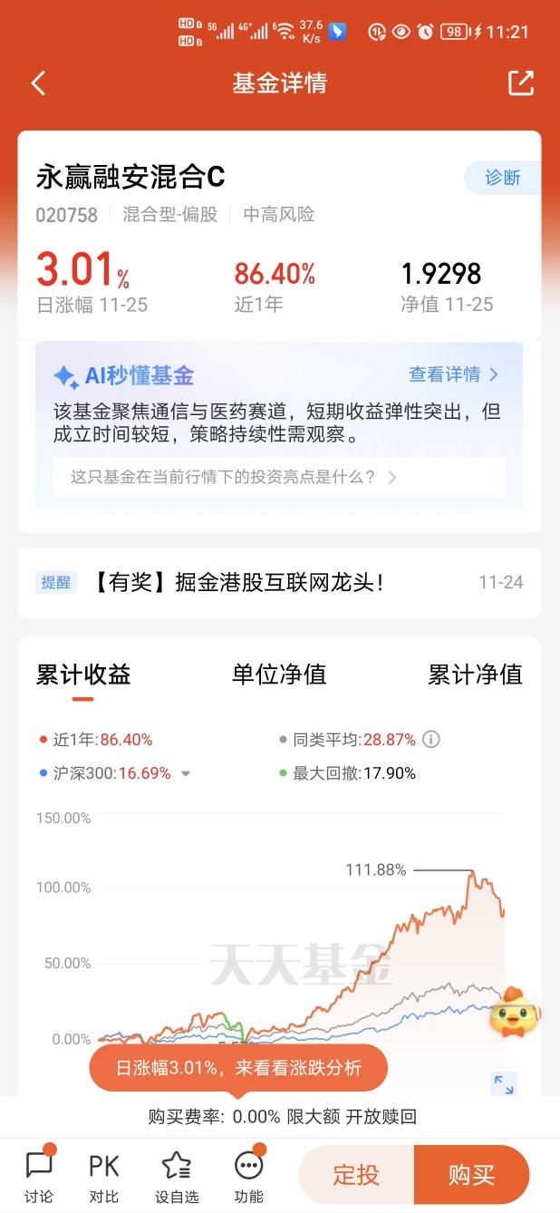 随着近期市场的上涨,有些板块估值已经很高了,这时候选股就比较难了。我个人觉得是时候选一些主动基金了,$永赢融安混合C$ 近1年上涨超86个点,轻松帮忙捕捉科技股轮动中的核心收益,在行业选择上,不会把鸡蛋放在一个篮子里,而是在科技、消费、制造等多个板块均衡配置,持仓覆盖电子、汽车、轻工制造等多个赛道,有效对冲了单一行业波动的风险。#谷歌发力AI CPO暴力拉升#