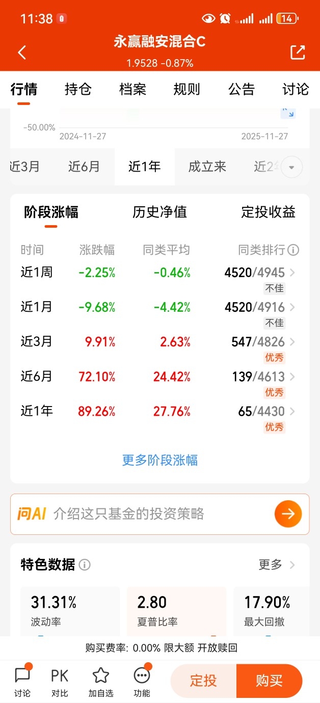 $永赢融安混合C$近六个月涨幅+72.10%,近一年涨幅+89.26%,弹性十足