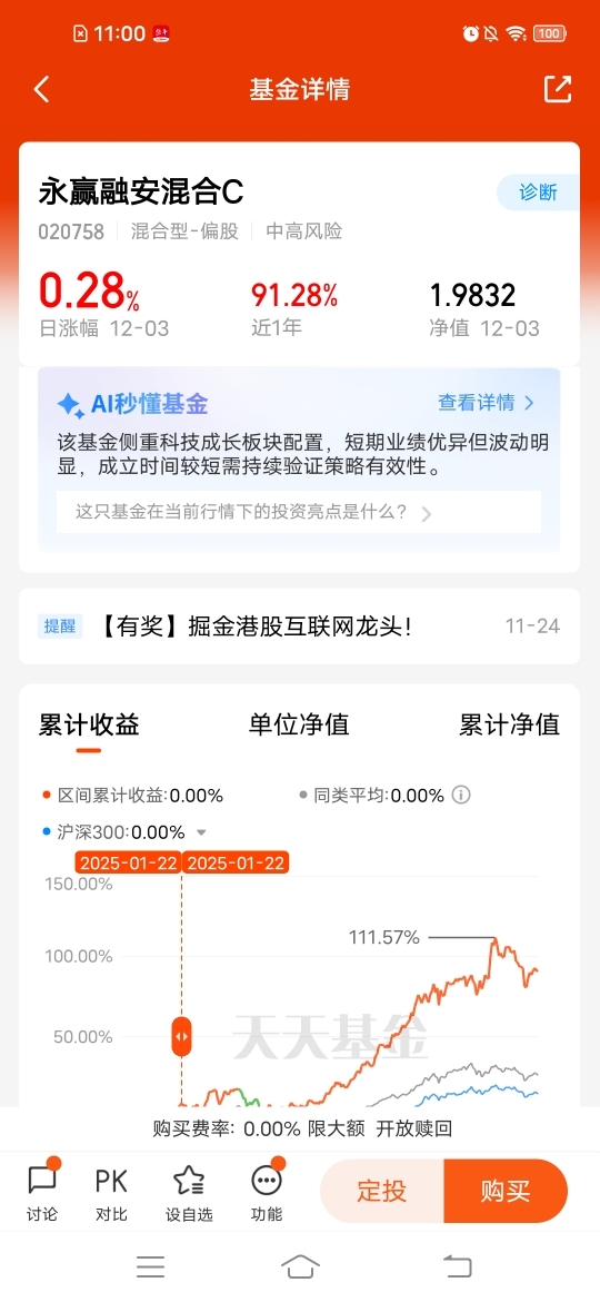 $永赢融安混合C$ 目前收集点筹码也是不错,昨天涨幅0.28%,近三个月涨幅6.05%,近半年涨幅72.35%,近一年涨幅91.28%,弹性足,始终围绕市场主线灵活布局,既有量子计算、CPO等符合科技发展趋势的板块,也配置了一些虽然相对小众但基本面扎实、走势稳健的个股,整体组合兼顾景气度与估值安全,力争在不同市场风格中争取超额收益。#华为将发布AI领域的突破性技术#