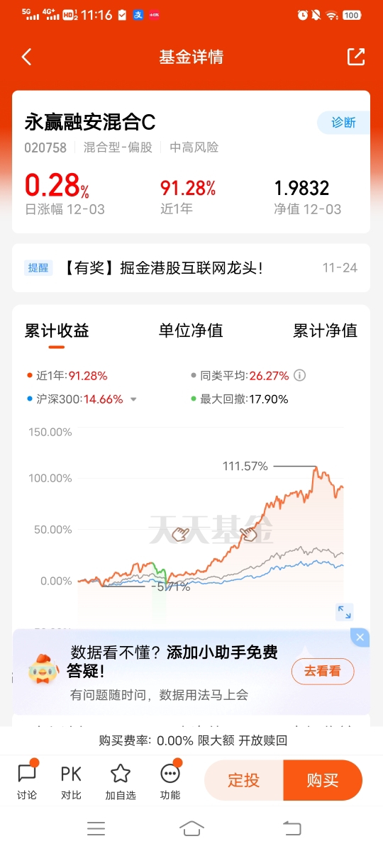 #铜价刷新历史高点!# 永赢表现强势的基金。$永赢融安混合C$ 位列其中。基金经理高楠选股大神。每次季报持仓披露后,都持有各行业龙头股。这只主动管理基金,持有好几个热门赛道,经理盘中轮动操作,今年来业绩表现很优秀。昨晚逆势上涨0.28%。近半年涨幅72.35%。近一年涨幅达到91.28%。各个阶段业绩稳健,比单一赛道更抗跌,超额增幅更强,适合现在震荡行情持有。