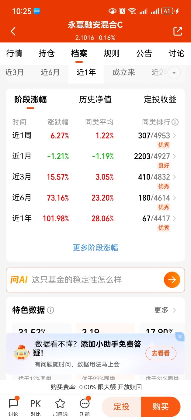 $永赢融安混合C$ 聚焦科技核心赛道,但不局限于单一细分领域。我们来看看业绩,近一周涨幅+6.27%,近一年涨幅更是高达+101.98%,在全市场数千只基金中,其各阶段涨幅均位居前列,充分印证了基金的成长性与盈利能力,后市潜力可期呀!#商业航天利好频出!如何把握投资机会?#