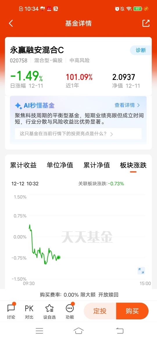 $永赢融安混合C$趁着波动布局起来,弹性足,近一周涨幅4.97%,近六个月涨幅6