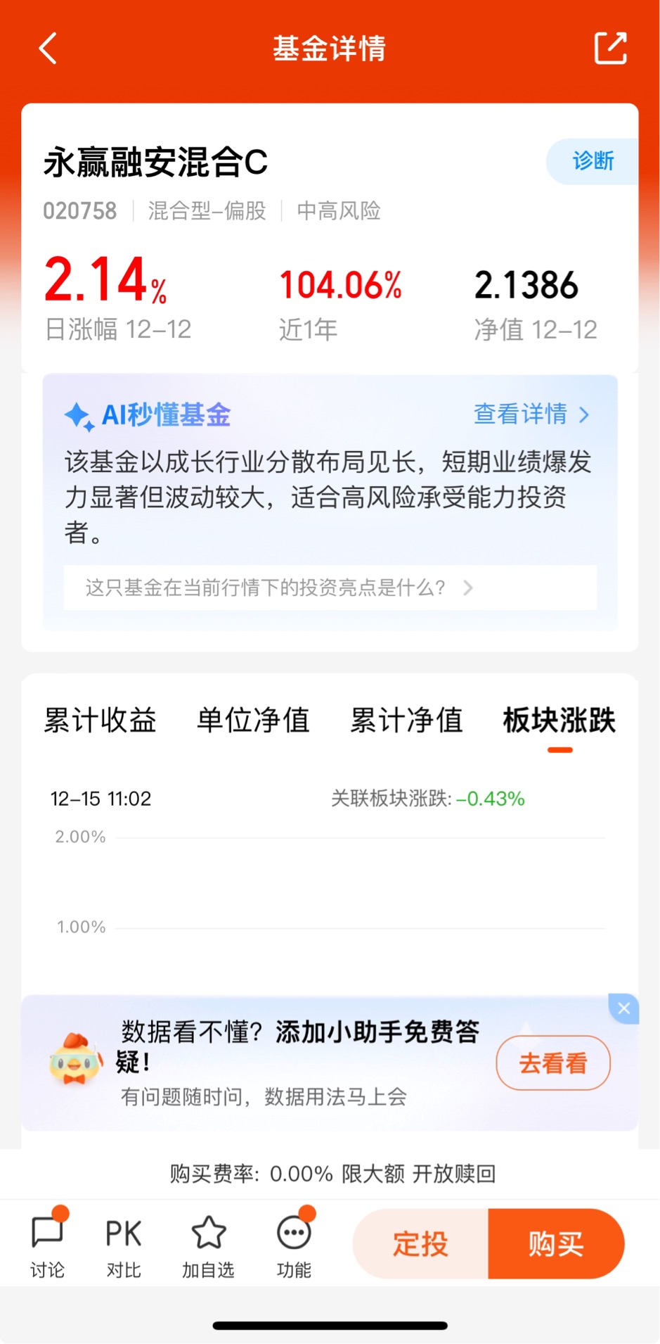 $永赢融安混合C$希望今天开门红阿,上周五收2.14%,近3个月收12.83%,