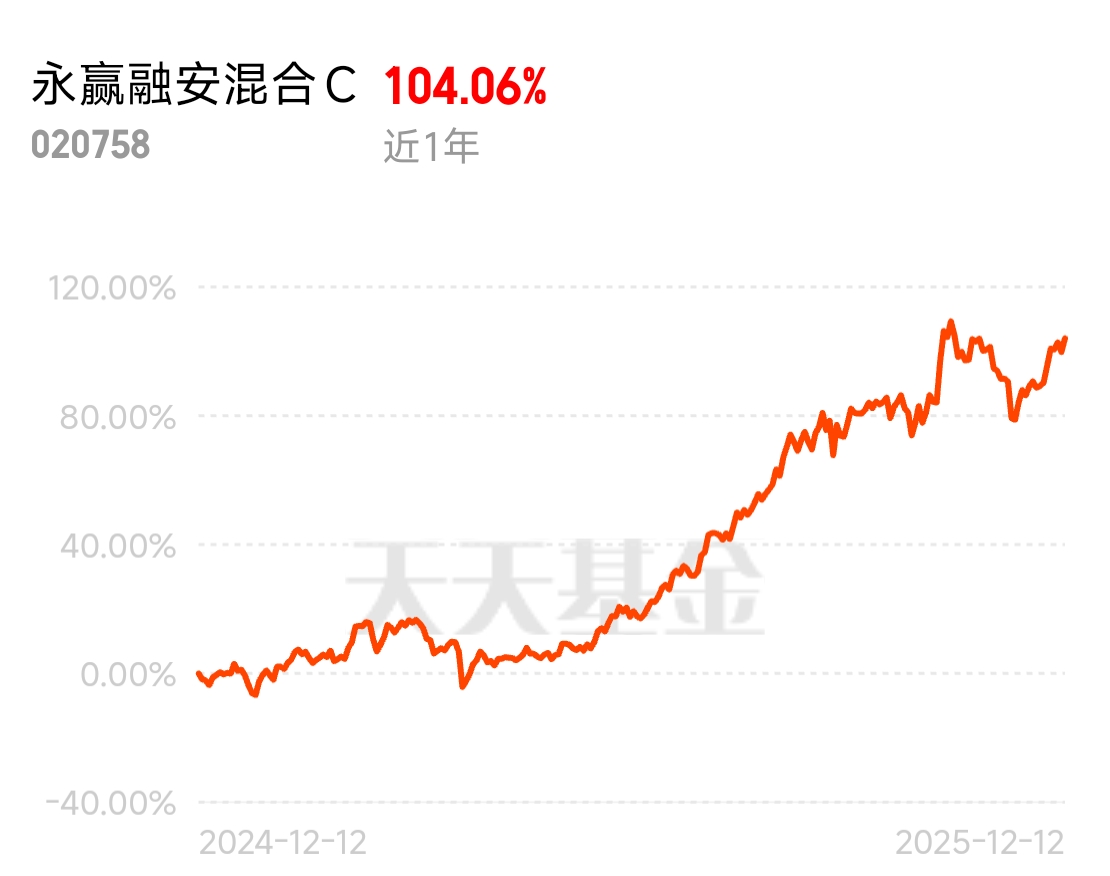最近关注的这只永ying融安混合凭借着近一年业绩104翻倍的表现,让大家都眼前一