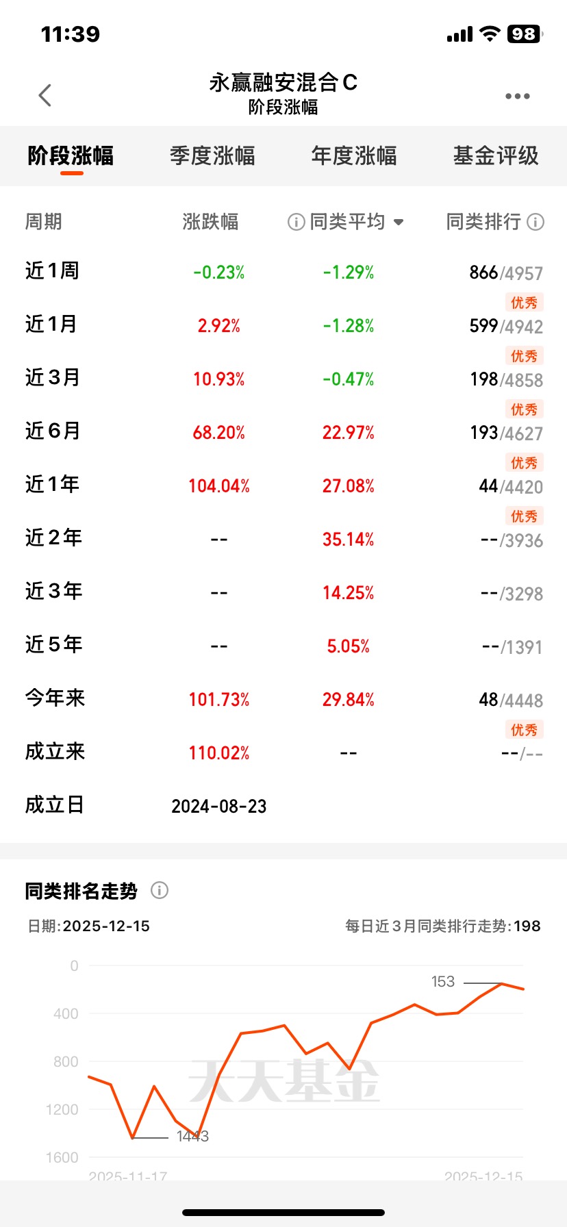 $永赢融安混合C$近三个月收益10.93%,近六个月收益68.20%;近一年收益