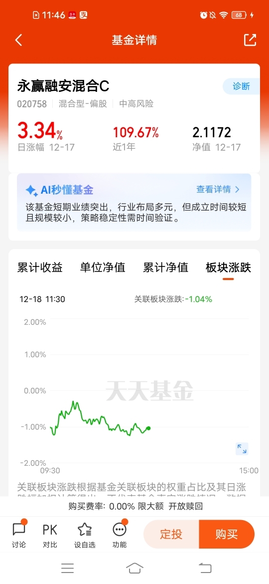 $永赢融安混合C$攒点筹码为明年做好准备,弹性十足的,昨天涨幅3.34%,近三个