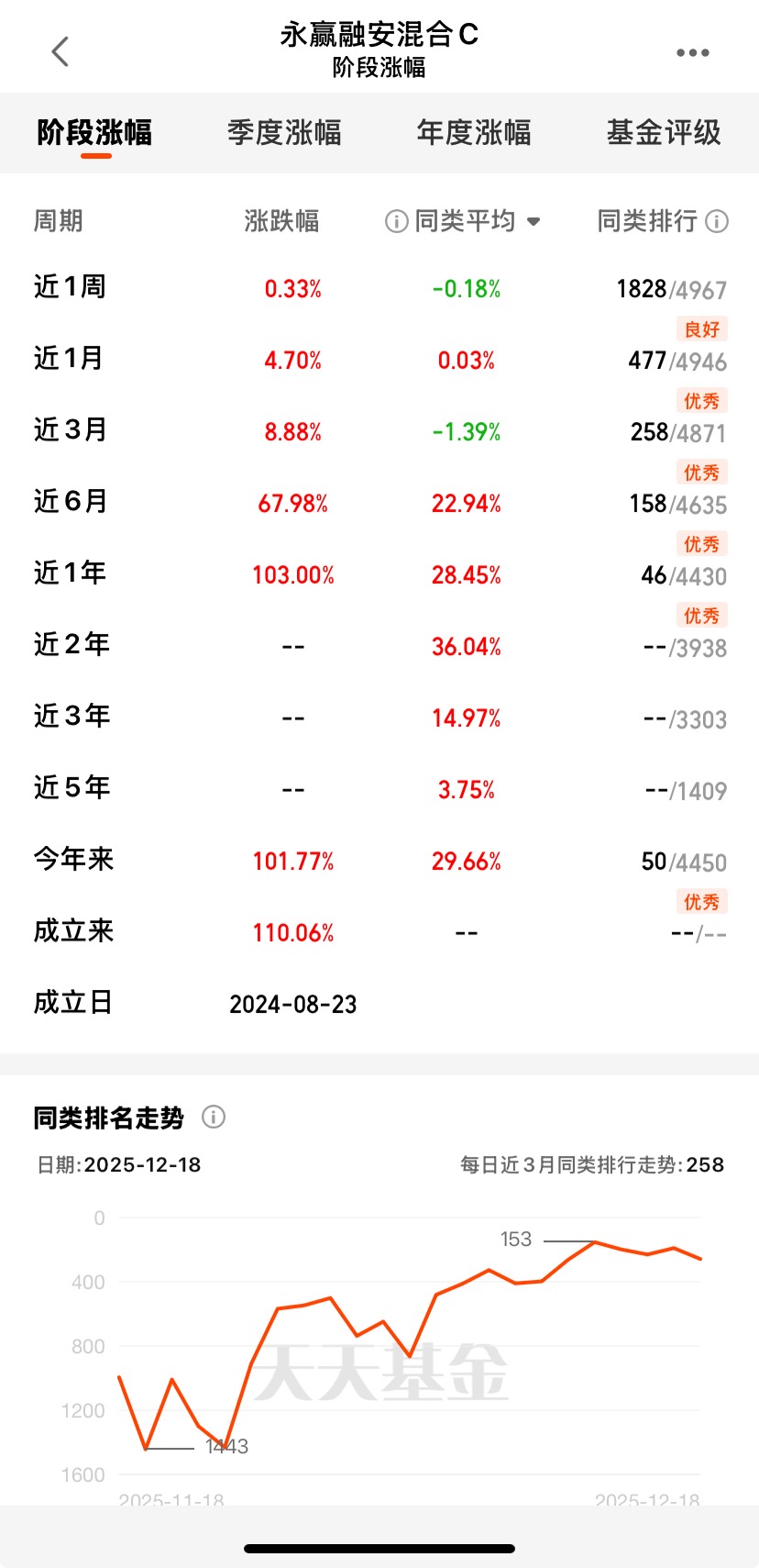 $永赢融安混合C$近三个月收益8.88%,近六个月收益67.98%;近一年收益1