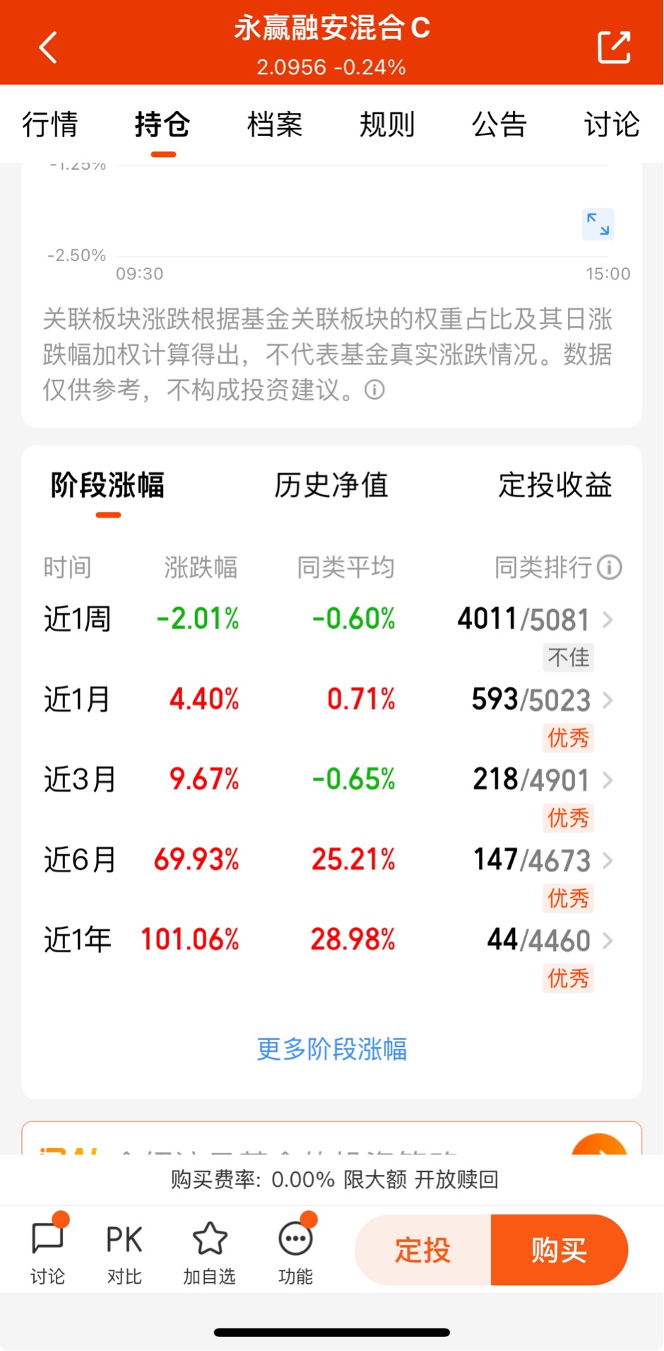 $永赢融安混合C$开启新的一周,近一个月收4.40%,近3个月收9.67%,近6