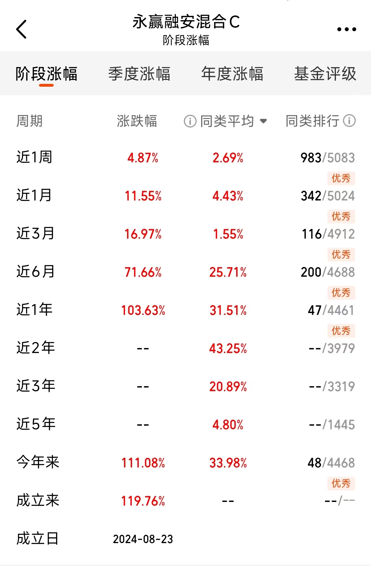 年末A股资金情绪有所降温,各个板块之间的行情轮动速度加快,投资难度渐增。这个时候,$永赢融安混合C$ (代码:020758)却表现出了稳健的收益能力。截至上周五,这基已经连续上涨5天,近一年收益超过100%,创下了历史新高!