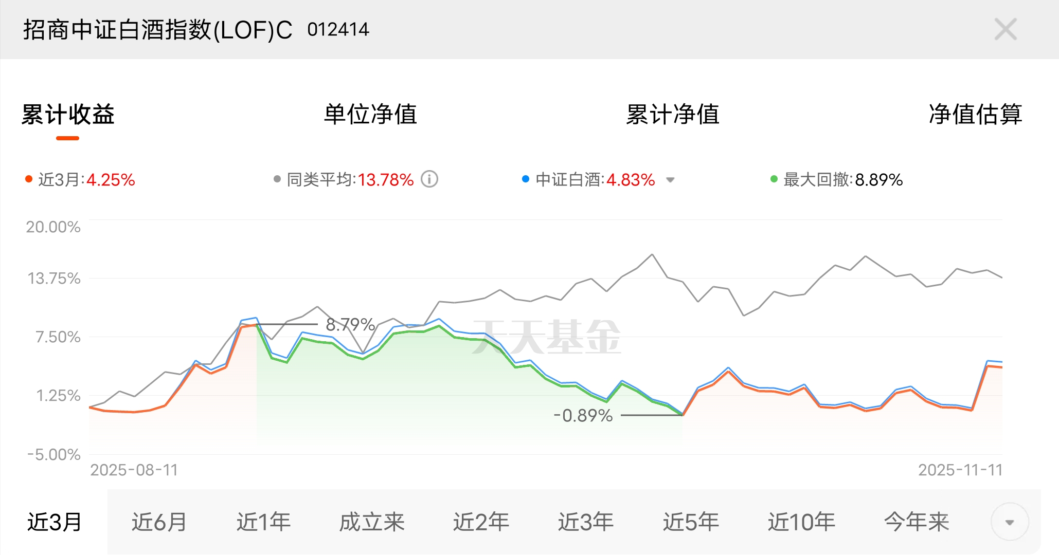 现在市场都在关注低估值消费股,科技板块前期涨太多开始调整,消费转好的政策支持力度大。招商中证白酒指数C今日估值合理,近3个月涨了4.25%,赶上资金高切低的浪潮,值得重点考虑。