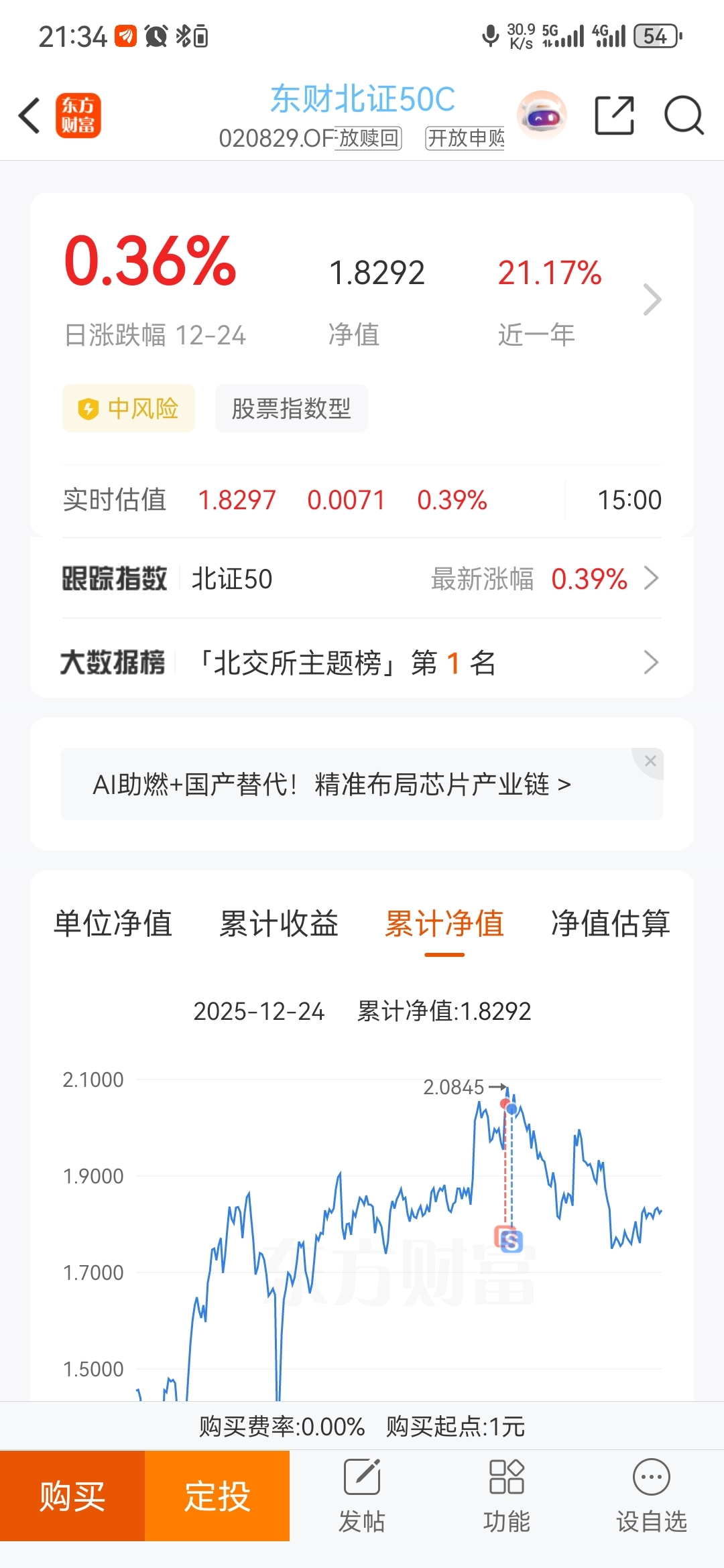 $东财北证50C(OTCFUND|020829)$ 今天基金净值大概率是正增长