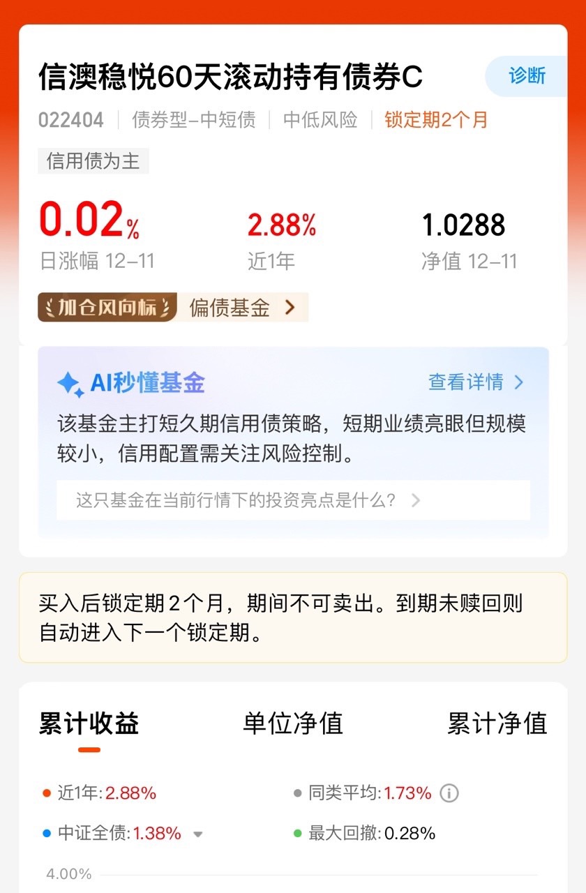 信澳稳悦60天实力证明好基值得拿一个月21个蛋,债市行情给力长期持有静待时间玫瑰,收益自然来 $信澳稳悦60天滚动持有债券C$
