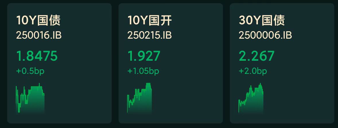 十年期国债收益率:1.8475%,+0.5BP(国债收益率越跌,债市越涨)