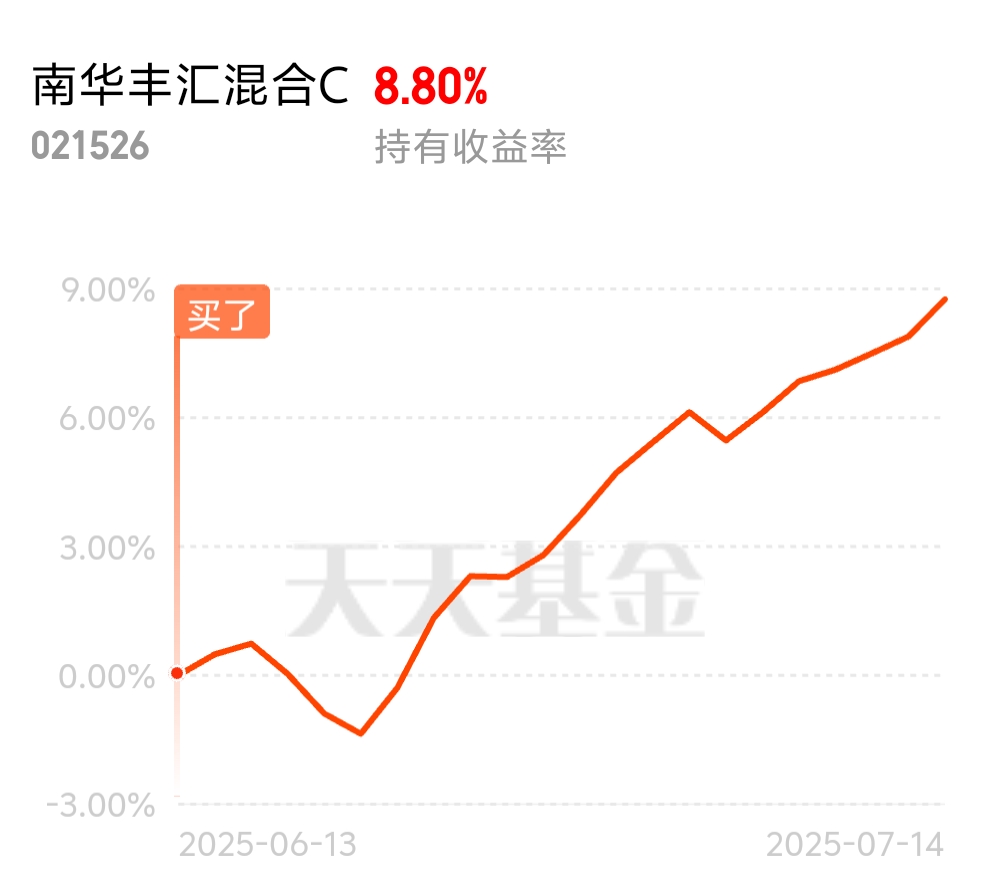最近12天又11是上涨的。今天终于小跌了,趁没限购赶紧加仓,近比中信保诚多策略、华夏新锦绣、金元顺安涨的还要多了!还不限购!估计目前盘子还不大所以量化超额会更明显,好操作。