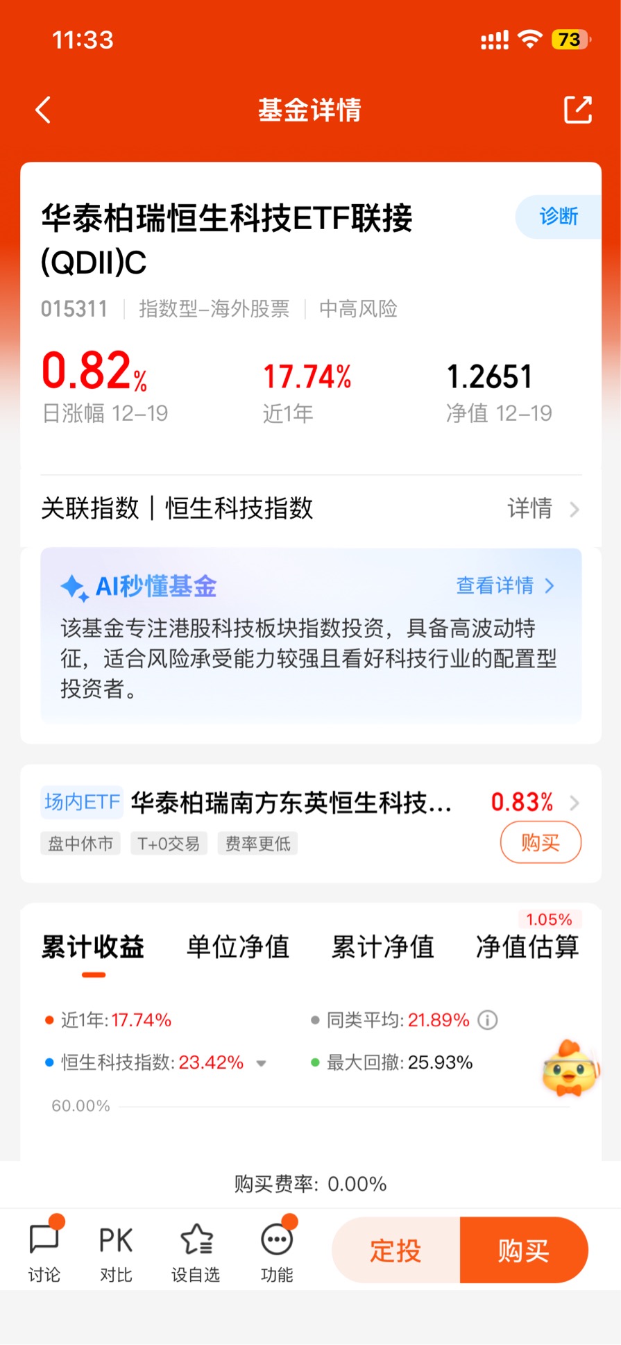 今儿恒生科技的行情太燃了,指数涨得明明白白,港股科技板块里的龙头股一个个都往上冲,看着账户里的恒生科技相关持仓飘红,别提多开心了!要说布局恒生科技,我首推华泰柏瑞的产品,它是QDII类型的,能直接投资港股科技指数,完美对接今天的行情走势,而且产品的特点就是贴合板块波动,适合能接受中高风险、想抓科技板块机会的人,今天这波上涨也让我觉得当初选它的决定太对了。$华泰柏瑞恒生科技ETF联接(QDII)C$ #青禾创作计划#