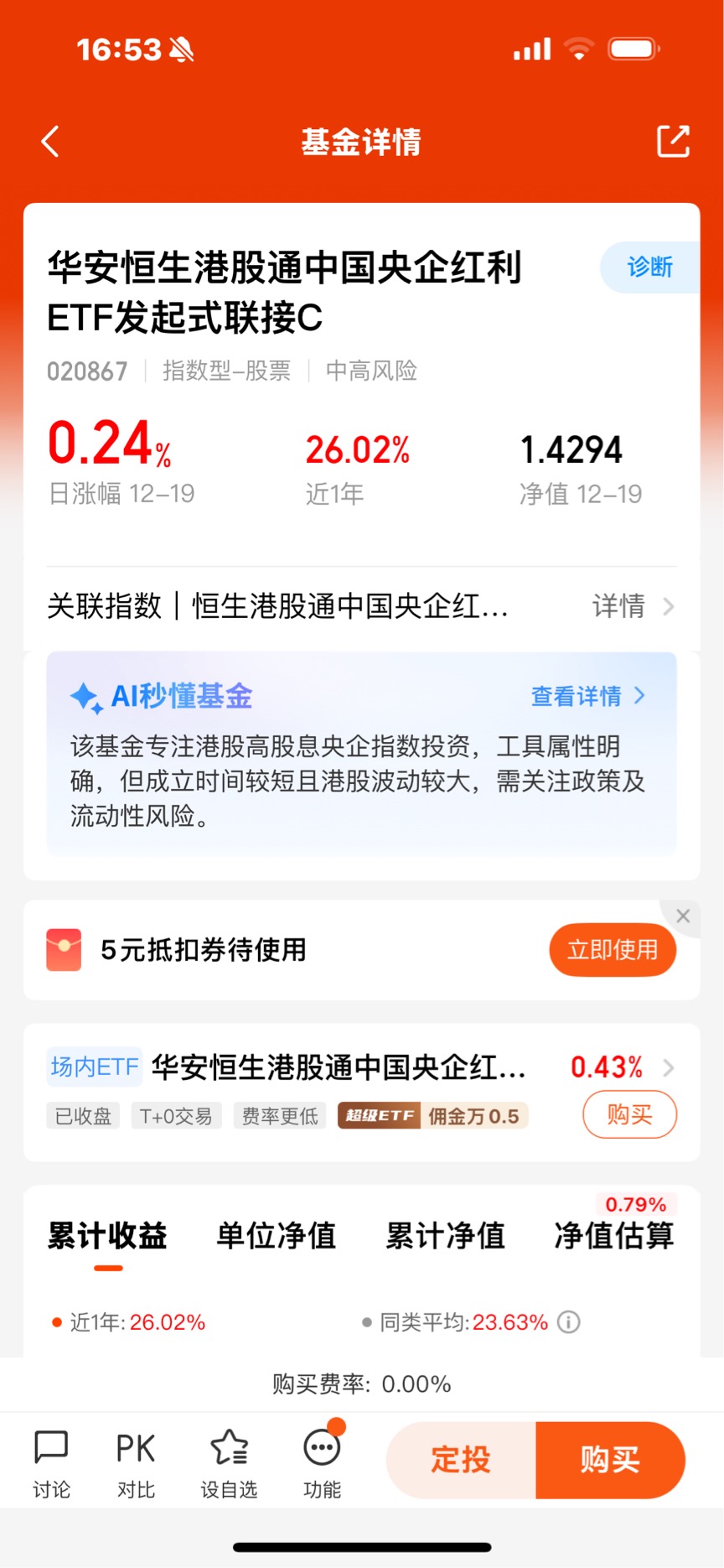 3. 港股通便捷,门槛低:无需港股账户,通过A股基金渠道即可配置港股央企红利,普通投资者易参与。