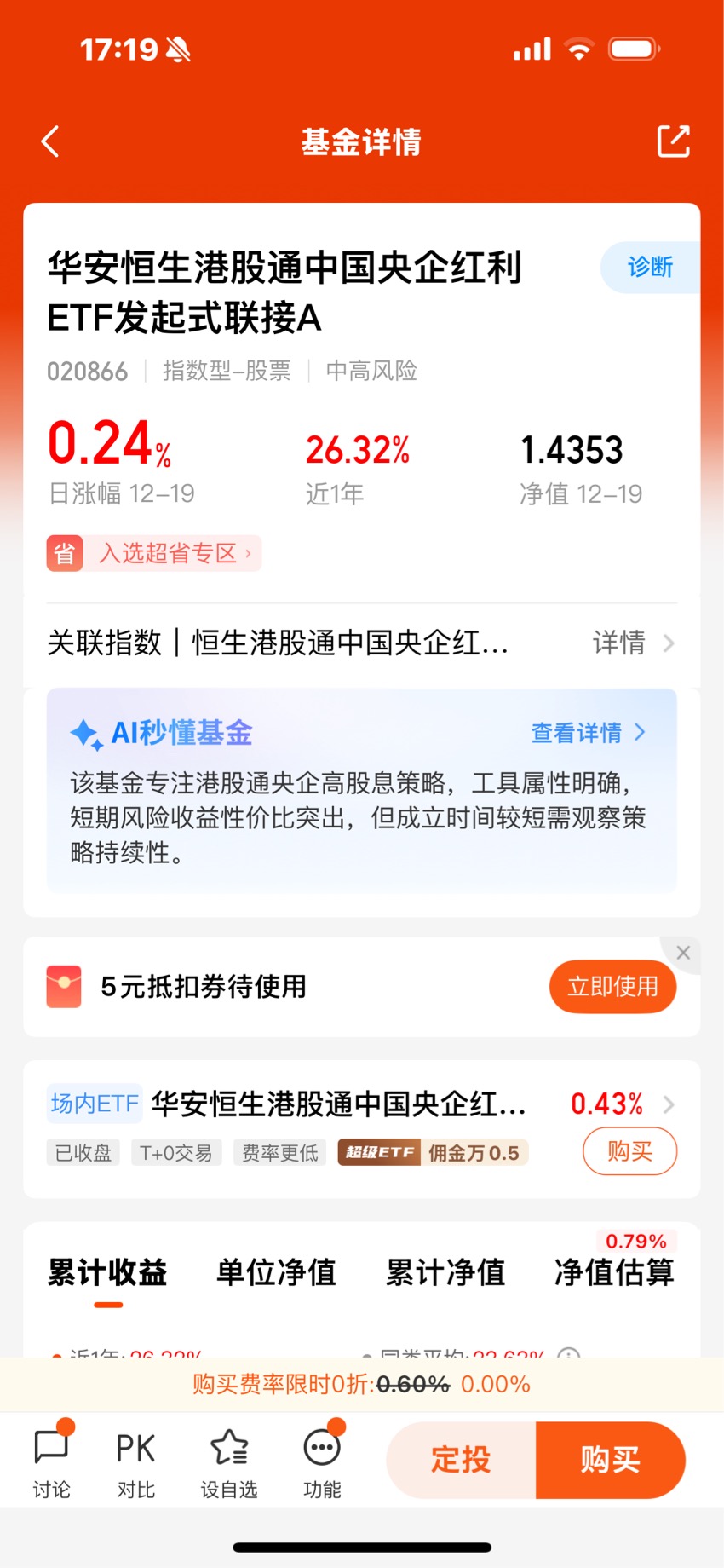 三、选择华安恒生港股通中国央企红利ETF发起式联接C有以下几个理由: