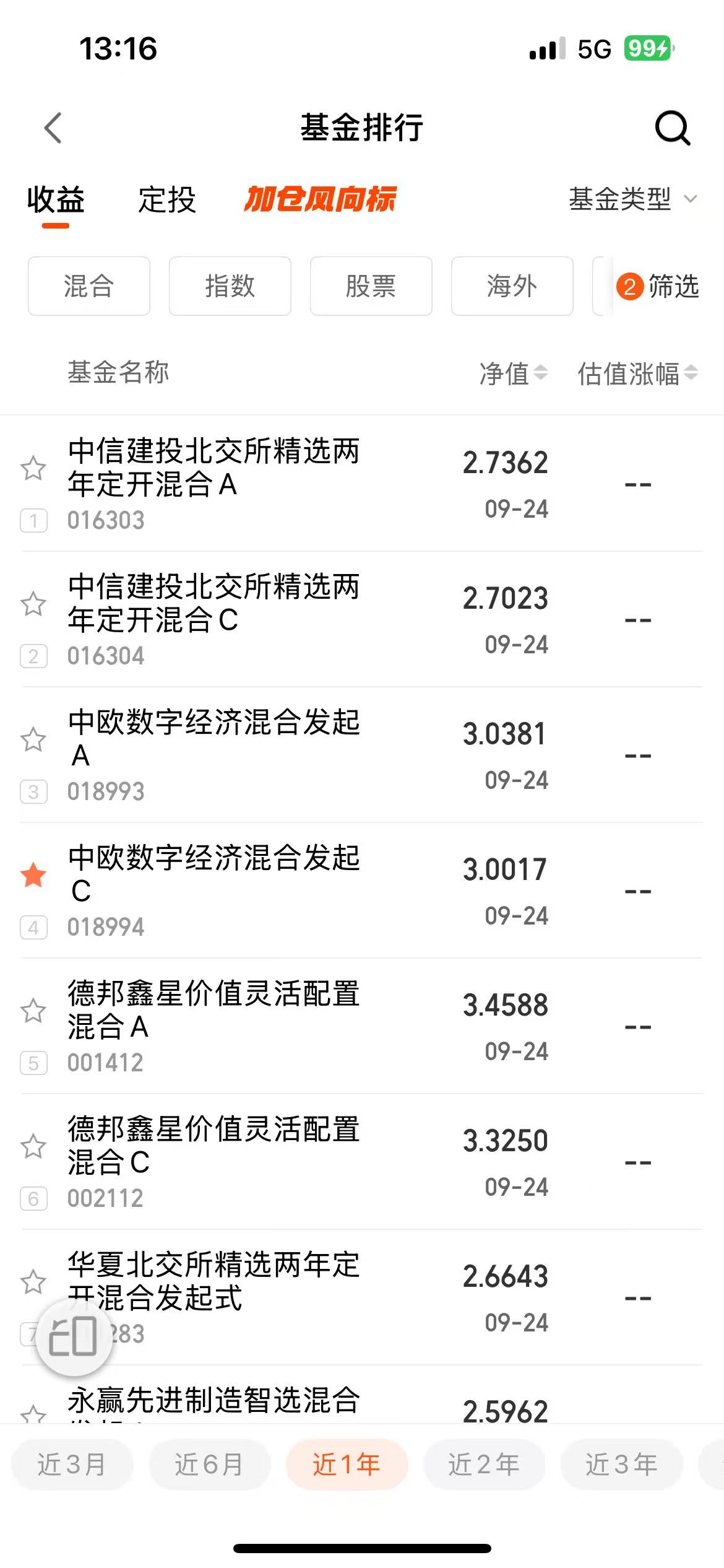 最近市场热点轮动快,但数字经济这条线一直很强。$中欧数字经济混合发起C$(018994)简直就是这条线上的快车,近三个月87%的涨幅,近一年249%,业绩排名靠前,表现比华泰柏瑞质量成长(011452)出色不少。冯经理对AI硬件、应用、国产化链条的把握很到位,仓位调整也灵活。虽然短期会有波动,但拉长时间看,净值创新高的能力很强。而且基金资产中股票类资产占比超过90%,充分投向市场。现在趁着市场还有分歧,用红包买点,成本价能更低一点,等大家都反应过来可能就晚了。#“924行情”一周年 你赚了多少?#