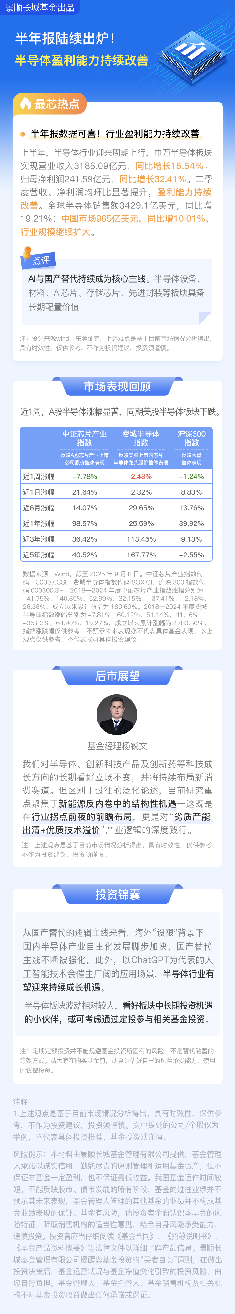 【半导体双周报】半年报解读!半导体行业盈利持续改善