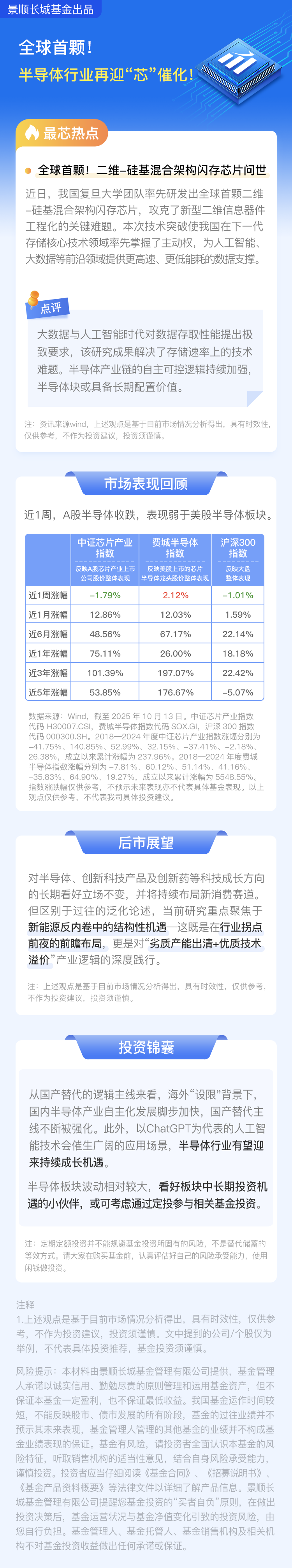 近日,复旦大学团队研发出全球首颗二维-硅基混合架构闪存芯片,半导体产业链的自主可控逻辑持续加强,半导体产业链后市怎么看?速看周报,查阅解析~