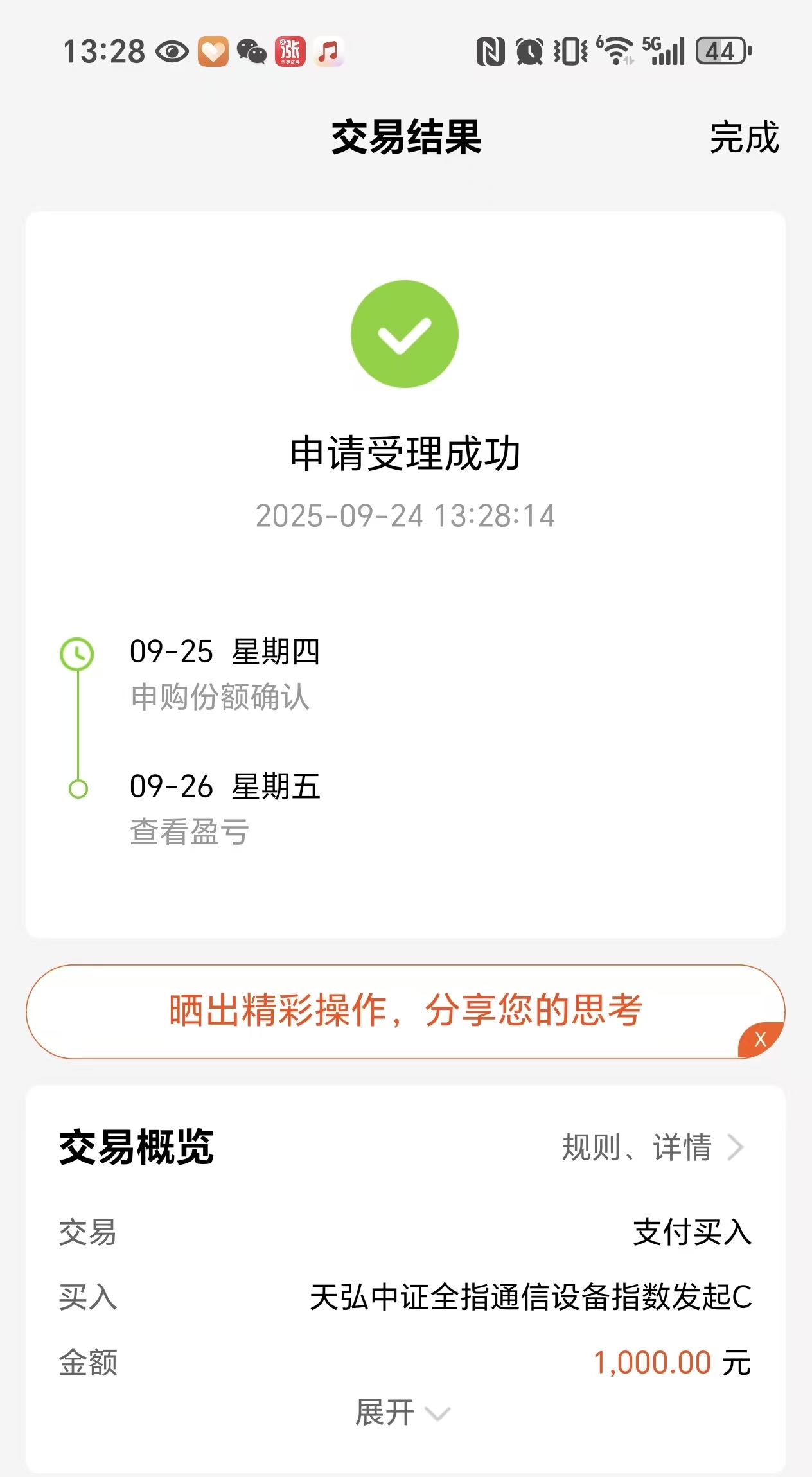 买入$天弘中证全指通信设备指数发起C$ 1000元