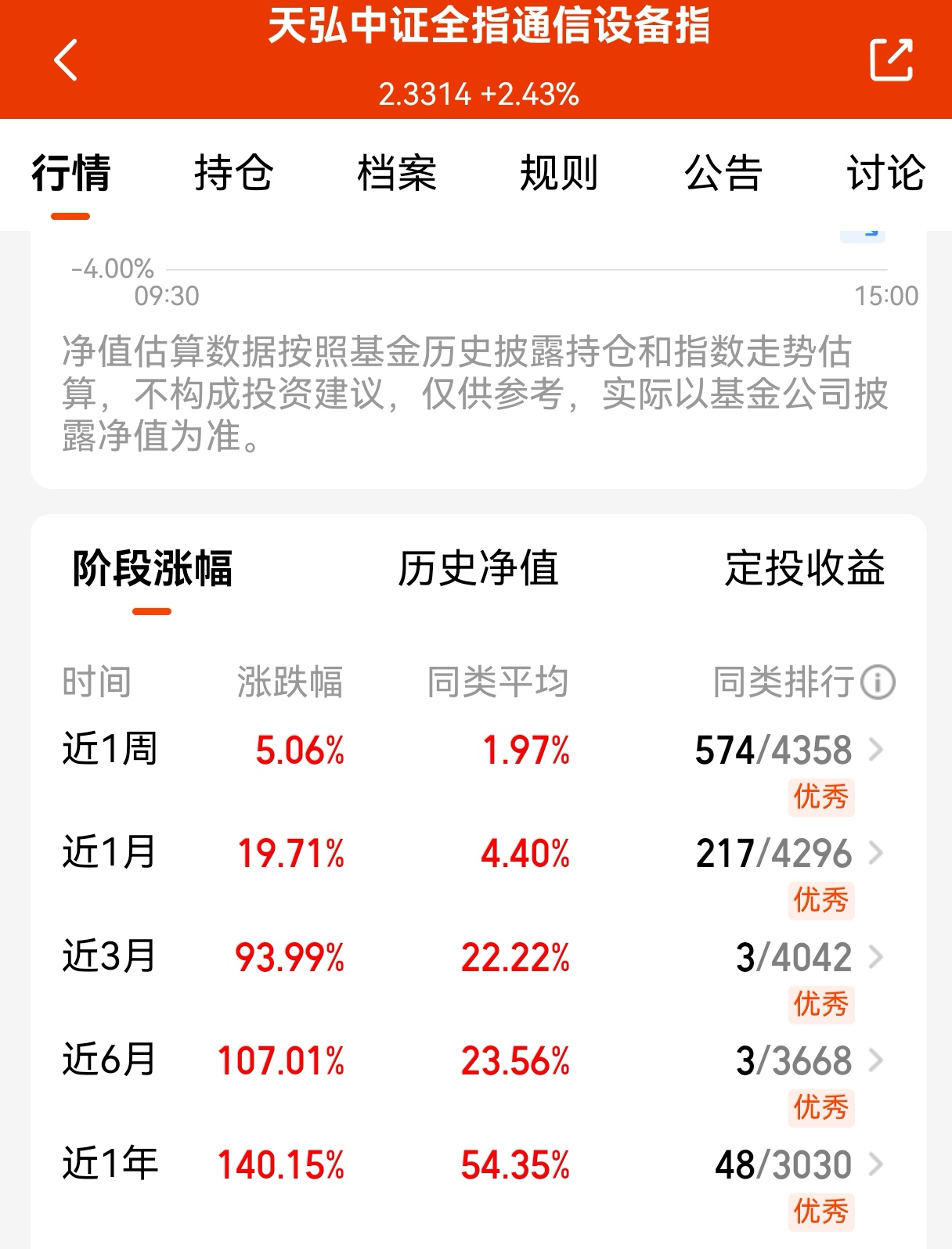 $天弘中证全指通信设备指数发起C(OTCFUND|020900)$通信9月表现是很强势的,回调就是机会,近一个月反弹超19.71%,同类平均才涨3.69%,近1年反弹超140.15%,同类平均才涨52.38%,真的涨幅超出太多了,从市场表现看,AI算力链算是今年市场最亮眼的存在,而通信设备这一波上涨主要源于AI算力需求的爆发以及政策的强力支撑,加上行业景气度也在不断提升,上涨动力充足。目前,通信设备与5G 建设、数据中心、物联网等新兴技术发展密切相关,而随着AI算力与5G/6G的建设扩容,行业也将迎来不错的成长空间。趁回调今天继续加仓一波。