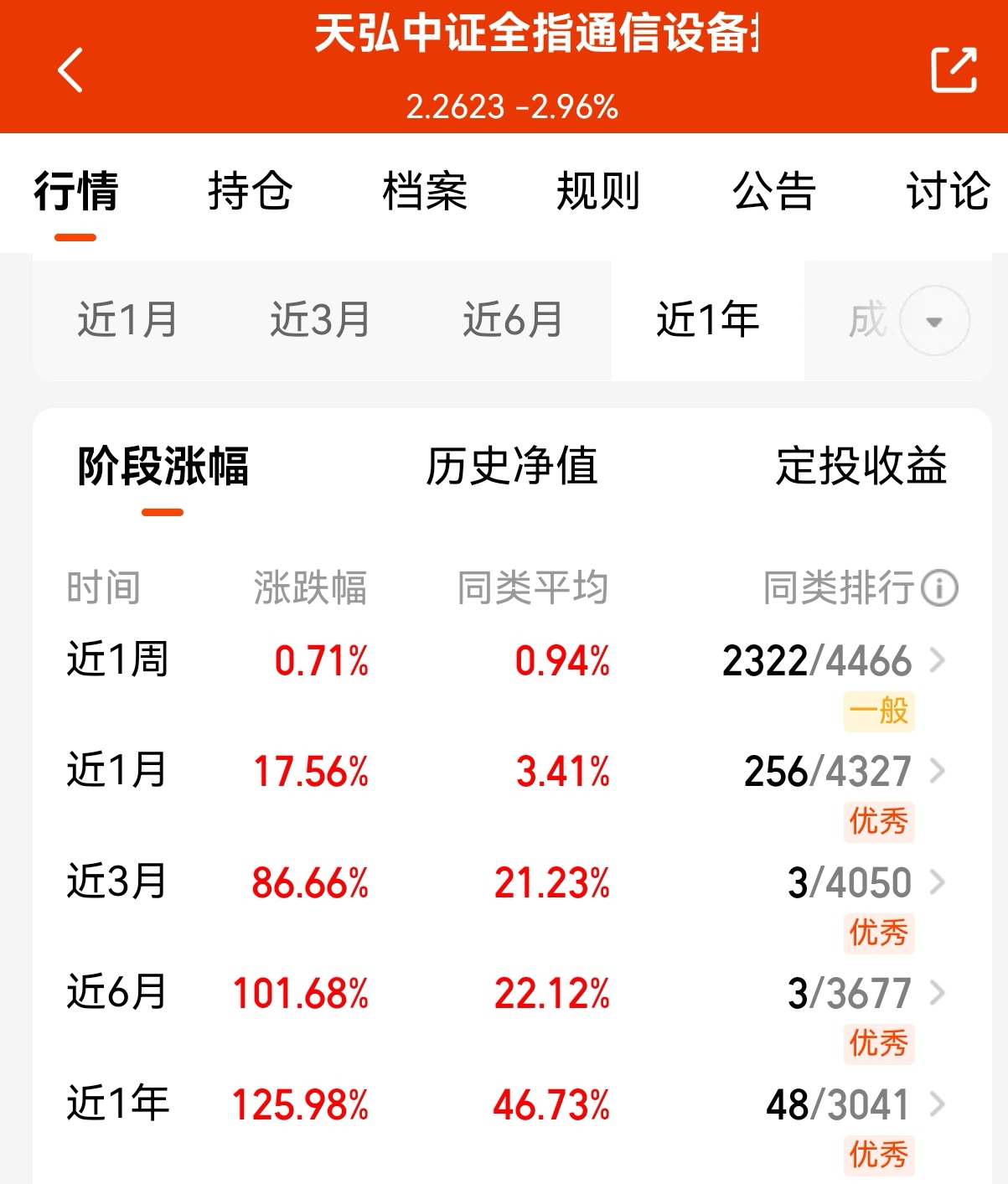 $天弘中证全指通信设备指数发起C(OTCFUND|020900)$通信果然回调就是机会,上周五加了今天立马就反弹了,目前涨幅1.42%,早就说了通信短期的波动不影响中长期继续上行。历次科技革命都是硬件先行,AI大模型要想快速发展离不开算力和数据,而光模块和通信是数据传输不可缺少的部分,也就是说,AI大厂想要发展就需要在通信和光模块领域加大投入,产业景气度非常高,后续潜力比较大。天弘中证全指通信设备指数发起C近六个月上涨超101.68%,近一年上涨超125.98%,确实很优秀了