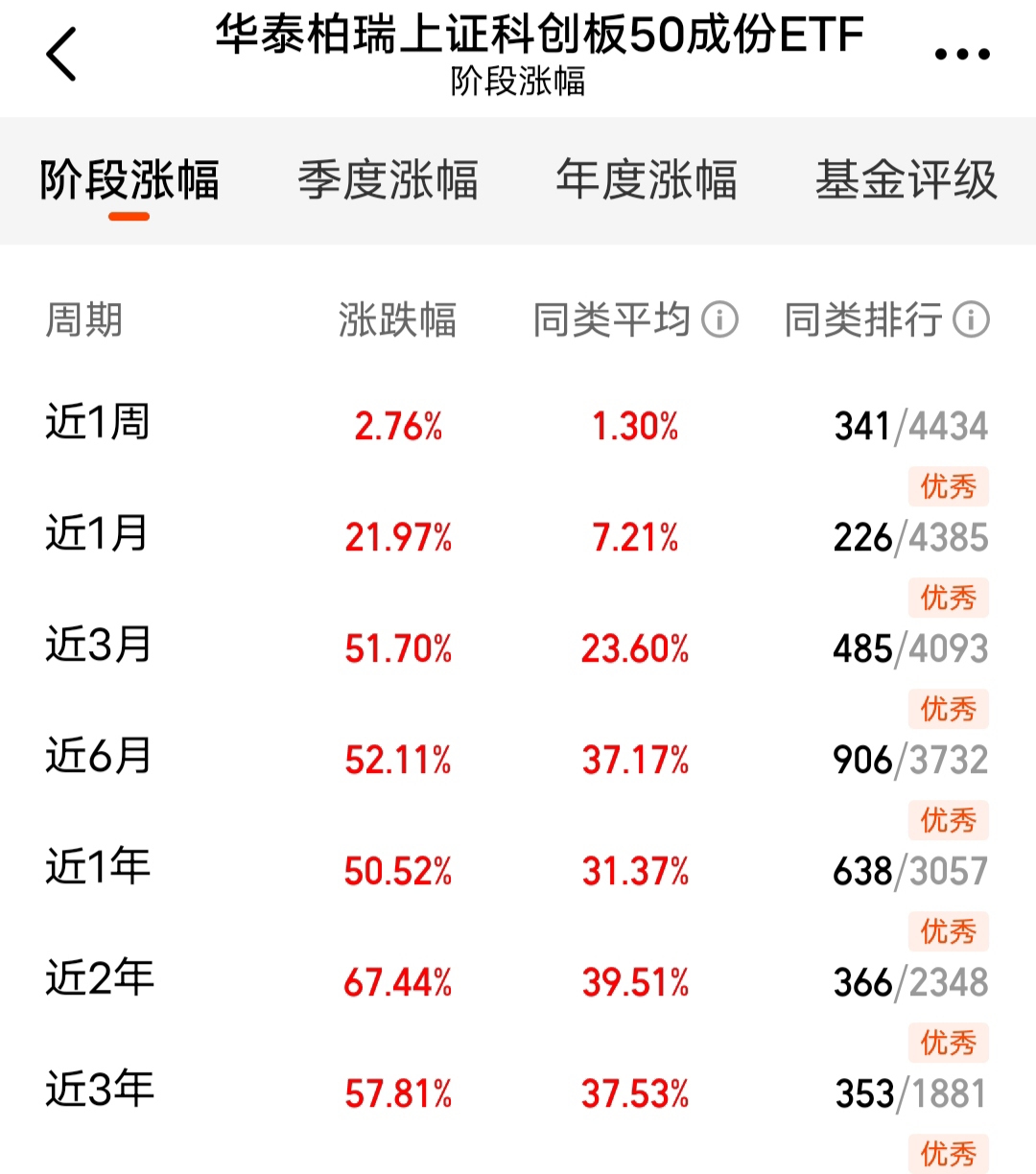 刚看到$华泰柏瑞上证科创板50成份ETF联接C$今天涨2.76%,三个月涨幅达5