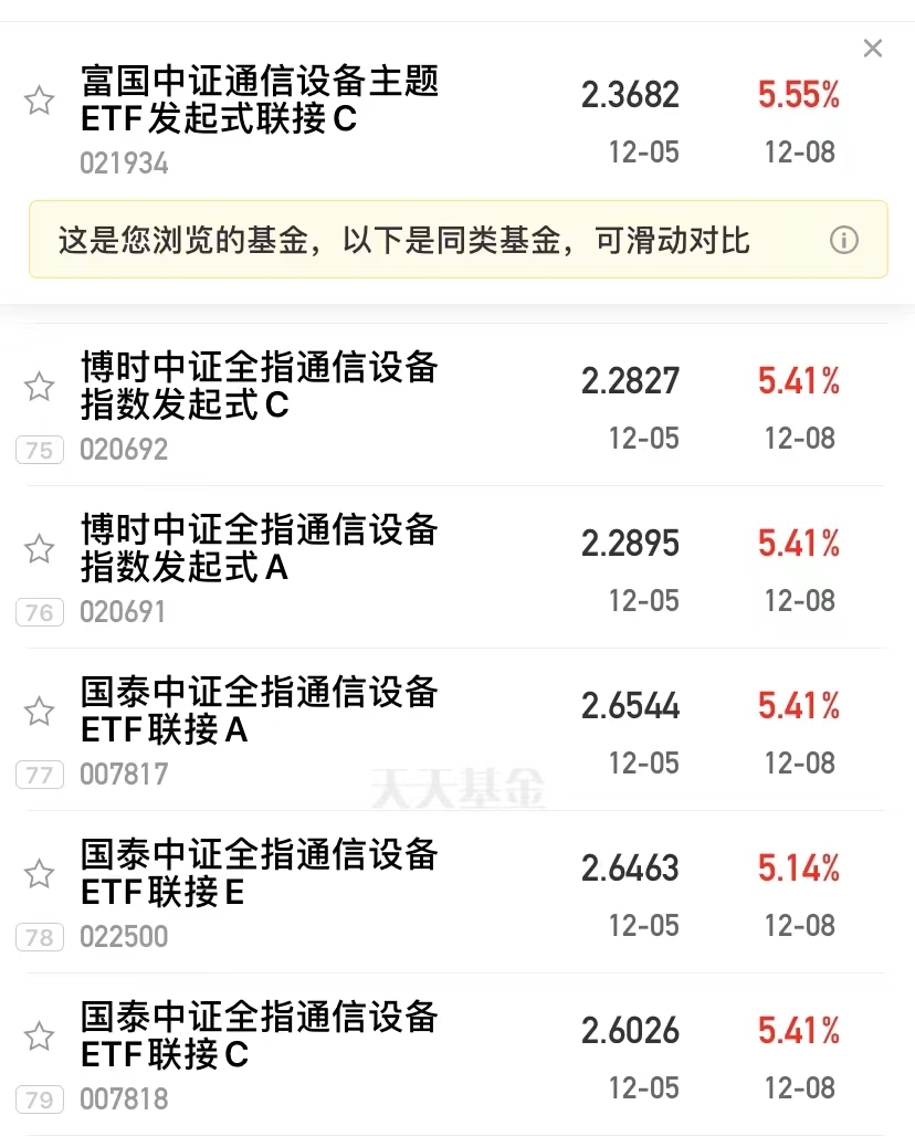 $天弘中证全指通信设备指数发起C$ 5.41%