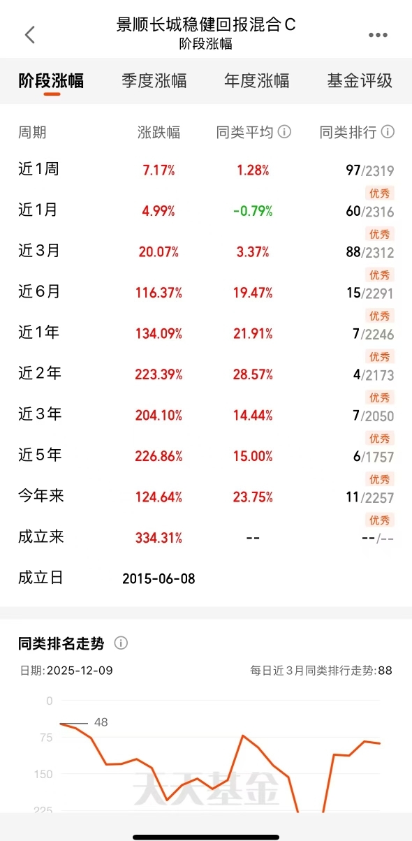 #商业航天利好频出!如何把握投资机会?# 科技基稳健回报最近表现很好,近半年涨了116%,净值已经创一年新高了,基金经理江山管理能力就是强$景顺长城稳健回报混合C$