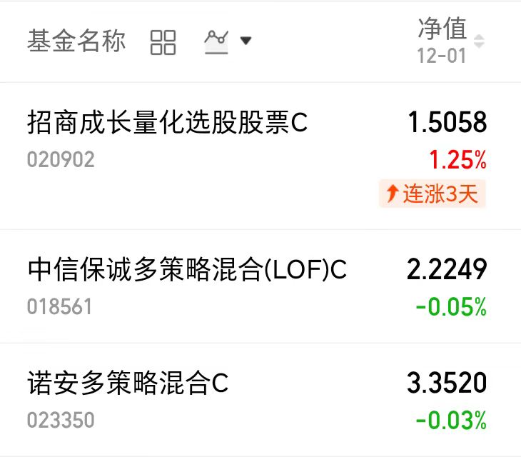 $中信保诚多策略混合(LOF)C(OTCFUND|018561)$昨天调整0.05%$诺安多策略混合C(OTCFUND|023350)$昨天调整0.03%