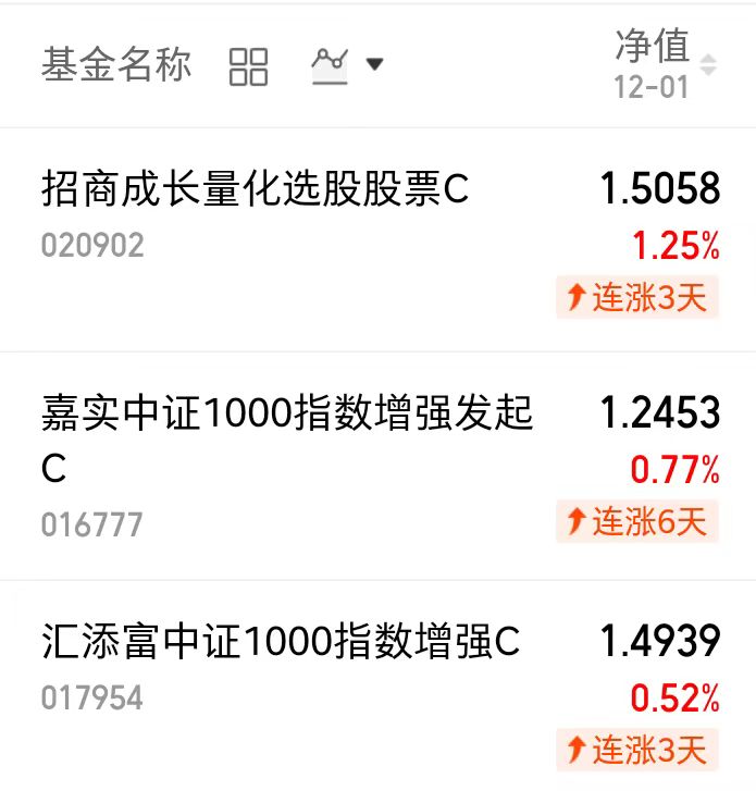 $汇添富中证1000指数增强C(OTCFUND|017954)$昨天上涨0.52%