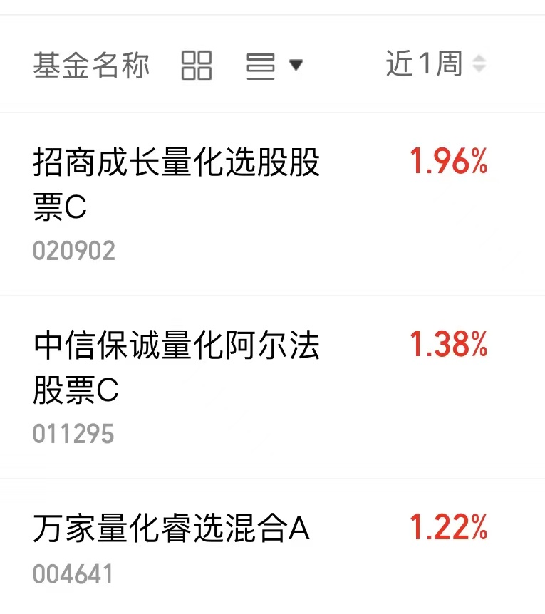 $万家量化睿选混合A(OTCFUND|004641)$近一周上涨1.22%