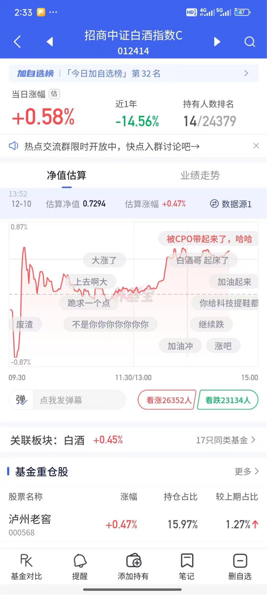 机构调仓偏爱低估值困境反转,资金往消费切,今日白酒指数表现向好。$招商中证白酒指数(LOF)C$ 聚焦白酒赛道,酒企推出小瓶装产品,迎合年轻消费需求。