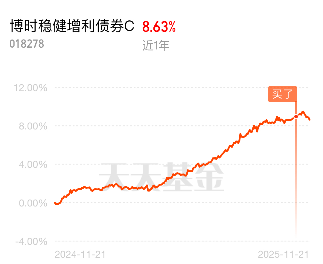 $博时稳健增利债券C$ 这股债通吃的搭配绝了,表现是真硬核。半年下来稳稳赚了5%以上的收益,业绩排名也相当亮眼,能涨抗跌,体验感很好!近期港深联合推出的离岸债券融资政策,11月19日香港和深圳联合发布行动方案,鼓励深圳企业赴港发行可持续发展离岸人民币债券,这一举措不仅拓展了国内企业的融资渠道,更重要的是提升了人民币债券的国际认可度,吸引跨境资金流入。这只基金的债券组合里有不少高评级人民币债券,跨境资金的关注会提升这些债券的流动性和估值,间接带动基金净值上涨。另外,11月财政部成功发行40亿欧元主权债券,认购倍数很高,体现了国际投资者对中国主权债的信任,这也为国内债市带来了积极的市场情绪,作为以高评级债券为主的基金,自然能受益于这种信心提振。其权益部分的表现更是惊喜,从最新持仓来看,世纪华通、豆神教育这些科技和教育板块个股被纳入其中,最近科技板块迎来政策利好,加上AI应用场景持续落地,世纪华通在游戏和云服务领域的布局开始兑现收益。关键这只基金的权益仓位控制得很好,占比不超过20%,既不会因为股市波动影响太多,又能在市场回暖时吃到收益。最近股市波动加大,这基有债券底仓的支撑,我打算再加一笔,既摊薄了成本,又能享受后续债市和股市的双重收益。#观点搭子团火热招募中!#