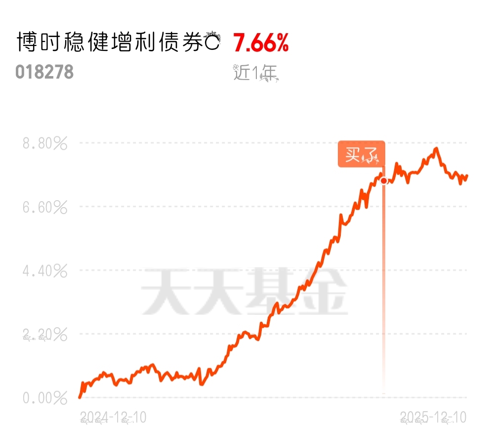 随着债市这波暖流,$博时稳健增利债券C$ 表现真不赖,一天就收了14个蛋。近半年5%以上的收益,跑赢了大多数同类产品。近期中债资信、外汇交易中心等联合推出“CFETS-SHCH-CBR科创CDS指数”,这个工具完善了信用风险对冲机制,让科创债等专项品种的市场接受度大幅提升,不仅降低了发行方的融资成本,也让投资机构更敢配置这类高收益债券。这只基金的债券仓位中,科创债、绿色债等专项债占比约25%左右,在科创CDS工具落地后,这类债券的流动性和估值都得到了明显改善,信用利差压缩带来了额外收益。同时,债市整体处于政策支持周期,央行释放的1.2万亿元长期资金,让市场流动性保持充裕,高等级债券的配置需求持续旺盛,为基金的债券收益提供了坚实支撑。其权益部分的表现更是让人刮目相看!基金经理的行业轮动太精准了,权益仓位重点布局的BC电池板块最近迎来爆发式增长。BC电池作为光伏行业的新一代技术,产能释放带动产业链订单爆棚。这基配置的BC电池产业链核心标的,包括组件龙头和激光开槽设备供应商,近期股价大涨,成为拉动这基净值增长的核心动力。现在科创债补贴降低了融资成本,股市在3800点有望展开结构性行情,再加上这20块羊毛券的锦上添花,布局时机很不错!#【跨年坦白局】提问金梓才、陈果#