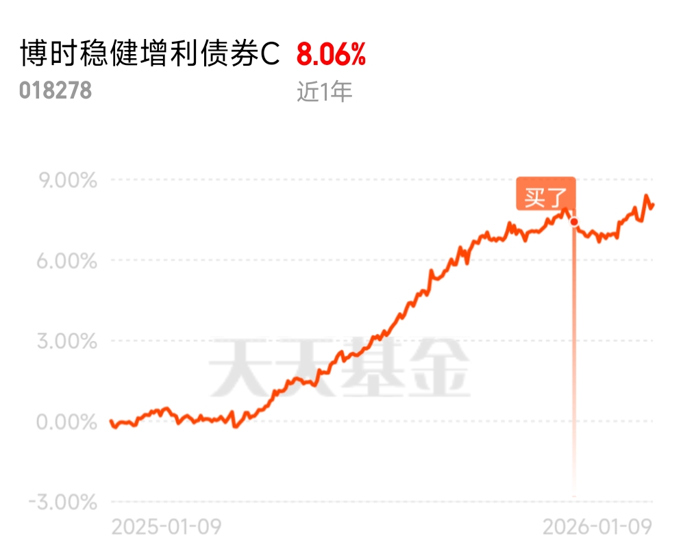 这波债市股市都还行,混债两头都能赚,表现给力!$博时稳健增利债券C$ 主投债券求稳,辅以权益增强收益,近一周轻松收蛋55个,近一年收益率稳超8%,持续收益能力很在线。近期美联储降息预期升温,市场普遍预期2026年美联储将降息4次,每次25BP,随着降息预期升温,美债收益率持续下行,带动全球利率中枢下移。这对国内债市来说是重大利好,一方面能减轻国内债市利率上行的压力,另一方面也会提升人民币债券的吸引力,吸引跨境资金流入。而且从国内宏观环境来看,为了配合稳增长政策,央行大概率会维持流动性充裕的状态,这也为债基的债券部分提供了坚实的支撑。而且其权益仓位近期表现更是亮眼,重点布局了周期板块的紫金矿业,近期周期板块受益于全球流动性宽松和供需结构改善,表现十分强势。紫金矿业作为“金+铜”双轮驱动的龙头企业,2025年金价创历史新高。2026年1月以来,紫金矿业被10家券商推荐,成为周期板块的“人气王”,股价稳步走高,为基金贡献了可观的超额收益。长期来看,随着全球经济的逐步复苏,新能源、基建等领域对铜、金等大宗商品的需求会持续增长,加上紫金矿业的产能持续释放,长期成长确定性高,这基布局这类标的,既保证了短期收益,也锁定了长期红利。#暖阳创作计划#
