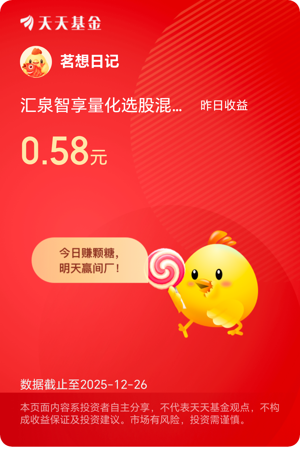 #晒收益# 每天一颗糖,甜甜的$汇泉智享量化选股混合A$ $汇泉智享量化选股混合C$