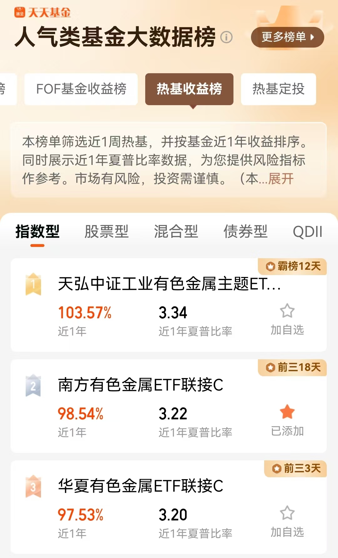 今天市场涨得不错,我赶紧买了点$南方中证申万有色金属ETF发起联接A$(004432)。现在这行情,有色板块就是主线。你看去年涨了那么多,今年开年还是这么强。现在全球都在建,需求上来了,但供给跟不上,这缺口一时半会儿补不上。这基金最近半年涨了65%,说明资金都在往这跑。我觉得现在就是上车的好时机,后面还有大行情。这种供需紧张的格局,可能还要持续一段时间。#2025超额关键词#