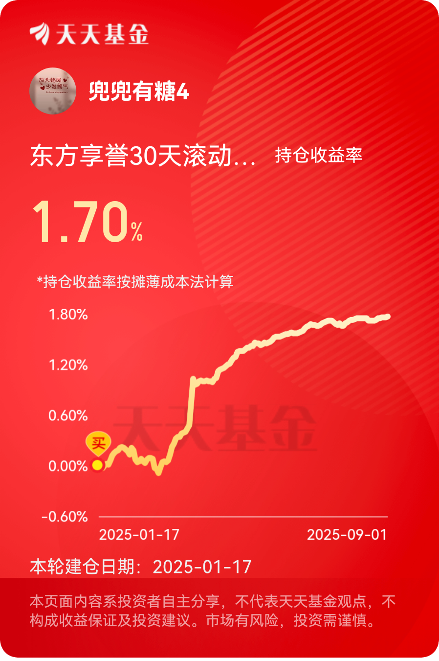 $东方享誉30天滚动持有债券C$ #晒收益#