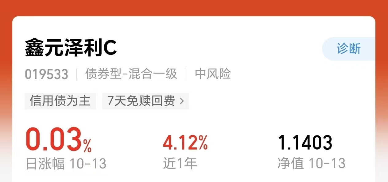 今日债市收益率上行致价格下跌,$鑫元泽利C$却展现出强韧性,今天收蛋3个,近1年