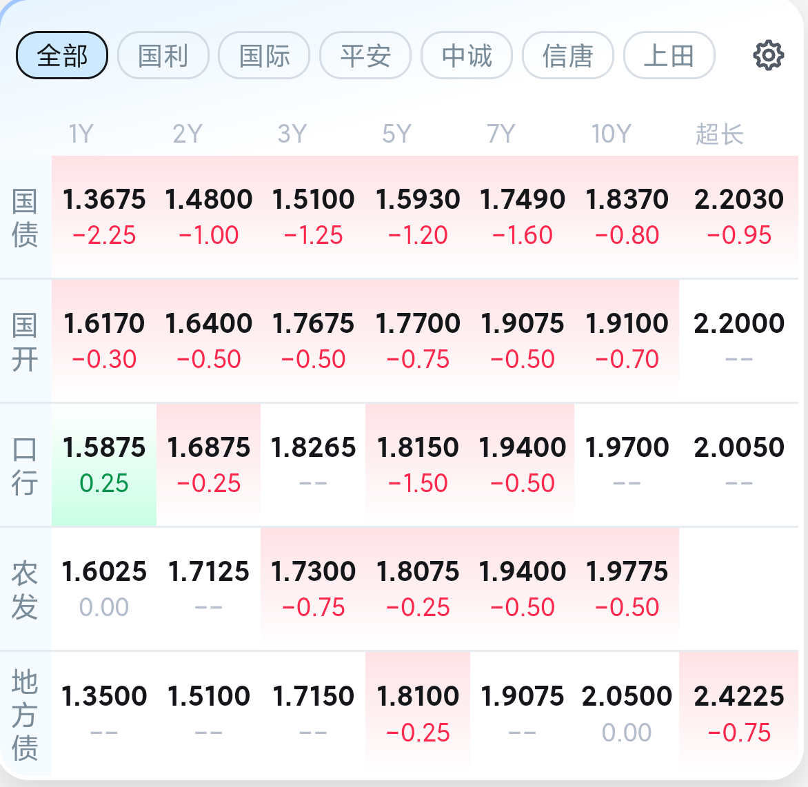 今日盘初定价中美谈判预期较好,市场风险偏好提升,银行间主要利率债中长端收益率上行2BP左右,盘中传MLF边际利率从1.65%降至1.6%,推动多头情绪,银行间主要利率债多数收益率陡峭势下行,市场还是比较期待今日金融街论坛年会传出相关货币宽松政策。整体来看,债市短期依旧需要关注政策方面导向。