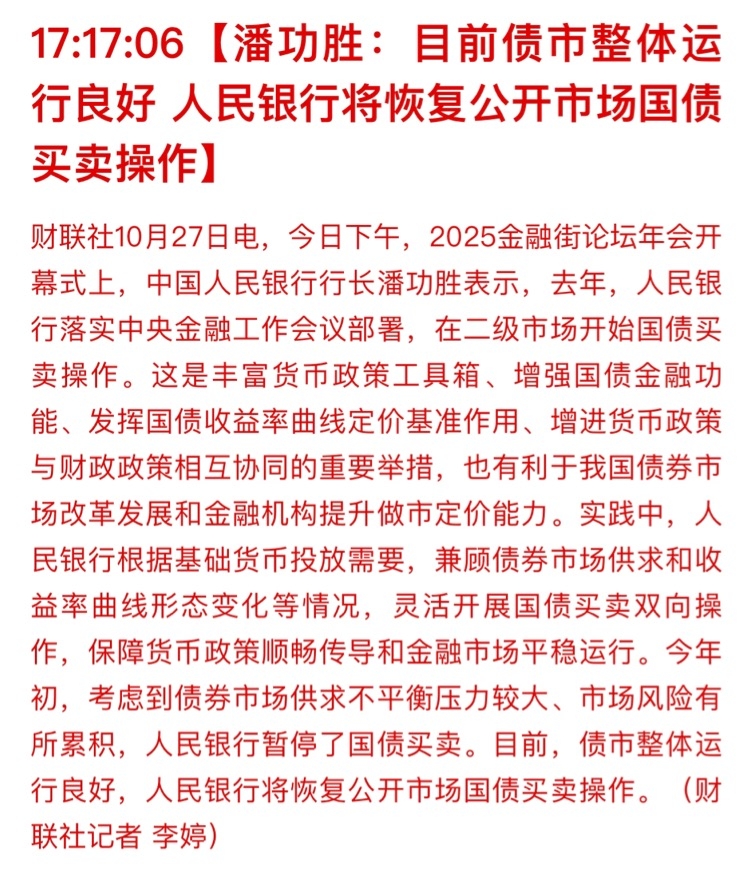 最新消息:央妈将恢复国债买卖!(对债市利好)