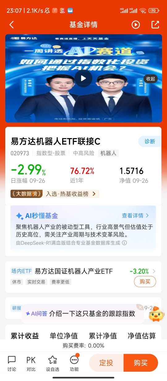 国庆前重仓科技成长:我认准易方达机器人ETF联接C