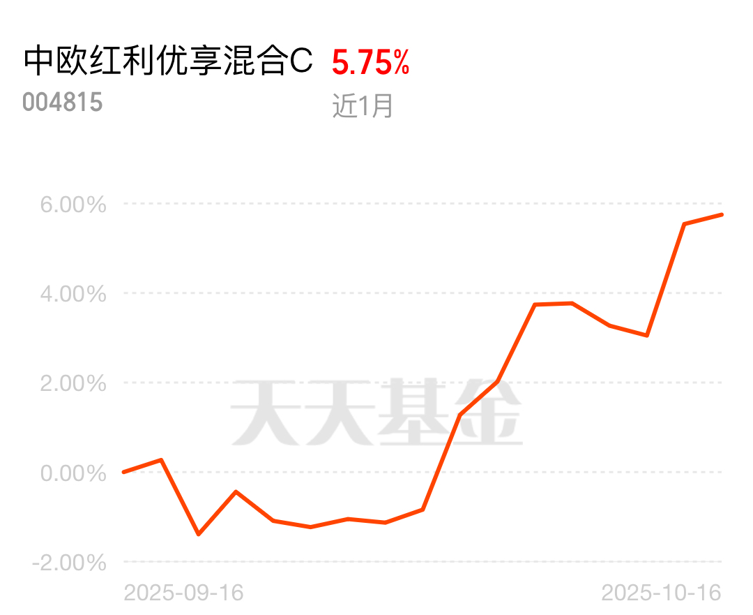 10 月市场不稳,海外也没谱,A 股风格换来换去没主线,红利反倒走俏,涨得比科技基金好!中欧红利优享 C能涨还抗跌,蓝小康这种经理少见,5000-10 红包,闲钱做底仓,每天买点!