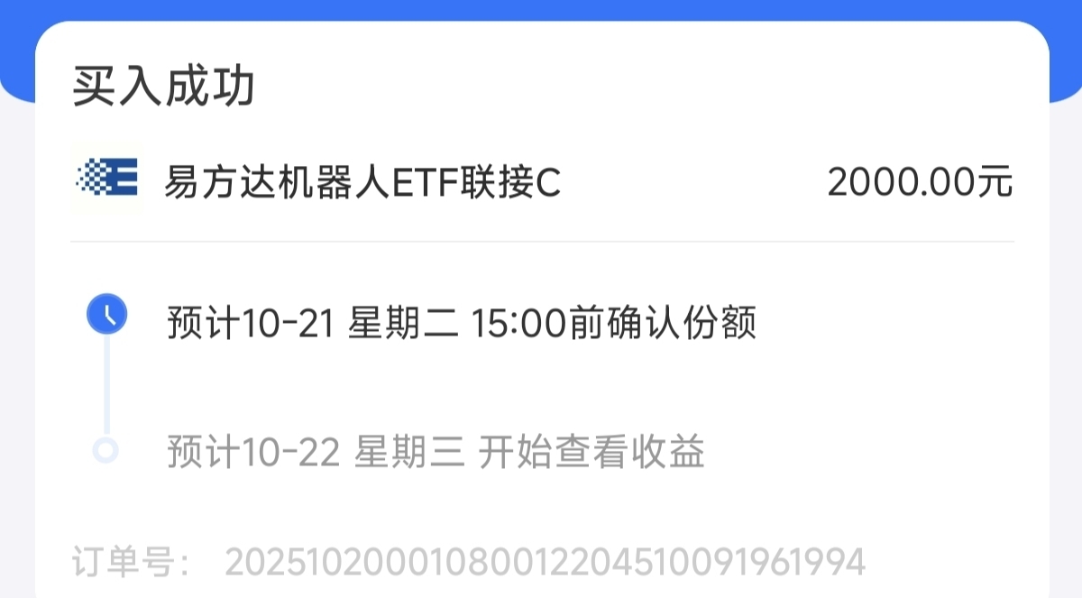 $易方达机器人ETF联接C$ 这只聚焦机器人的指数基金。跟踪国证机器人指数,指数中中人形机器人占比明显高于中证机器人指数,今年机器人主线在人形机器人。估值已经涨超三个点。长期表现做到了涨多跌少。我也顺势布局了。